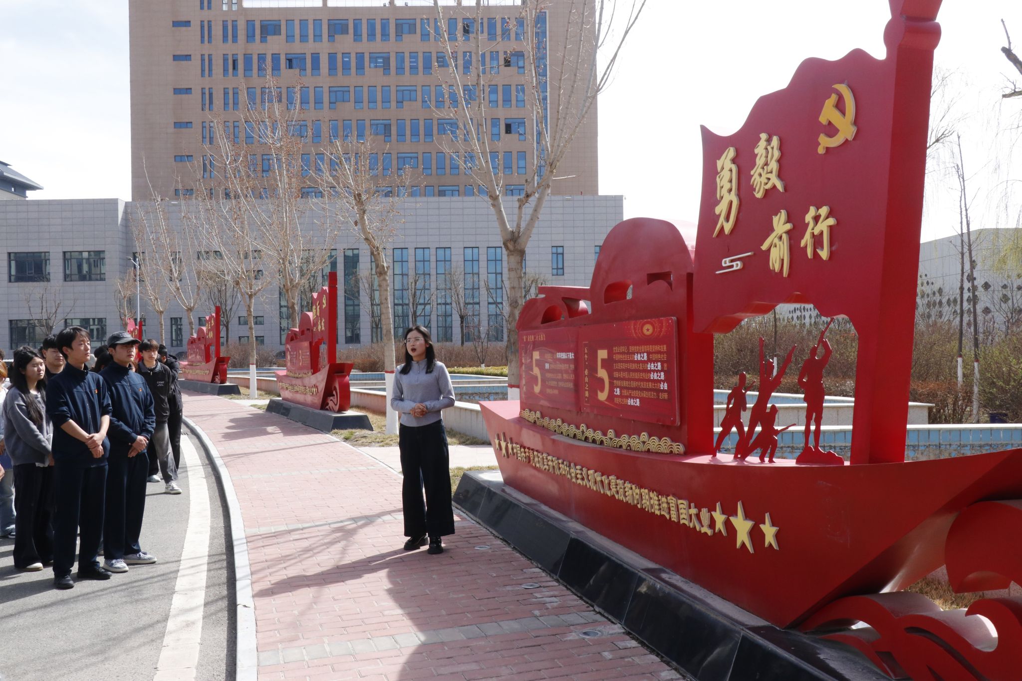 为深入落实《定西职业技术学院 甘肃省定西市临洮农业学院“清明祭英烈 重走长征路”思政实践育人活动暨大型思政公开课“永远不会忘记”实施方案》,4月1日,我院组织学生前往党史文化长廊与国家安全教育基地,开展“红色溯源 专业赋能”主题研学活动。在党史文化长廊,马克思主义学院教师石桃娜以时间为脉络现场讲授思政课,沿着百年时光的轨迹,为大家讲述中国共产党从诞生到发展、从奋斗走向辉煌的壮阔征程,生动再现革命先辈不畏艰险、...