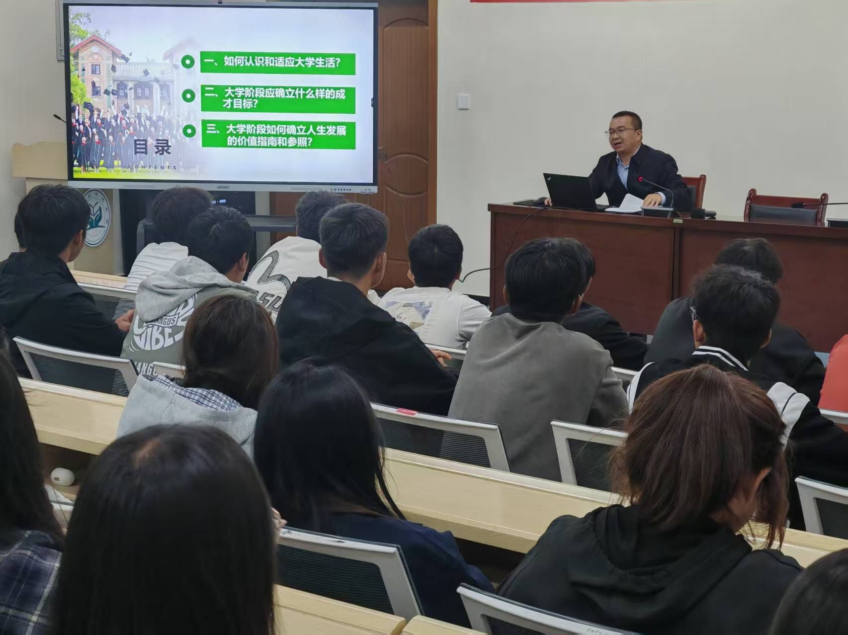 为助力新生明晰专业航向、规划大学征程、锚定成长坐标,近日,定西职业技术学院院长张学通在2号报告厅为2025级动物医学、动物科学专业新生讲授了一堂兼具思想深度与实践温度的思政课。