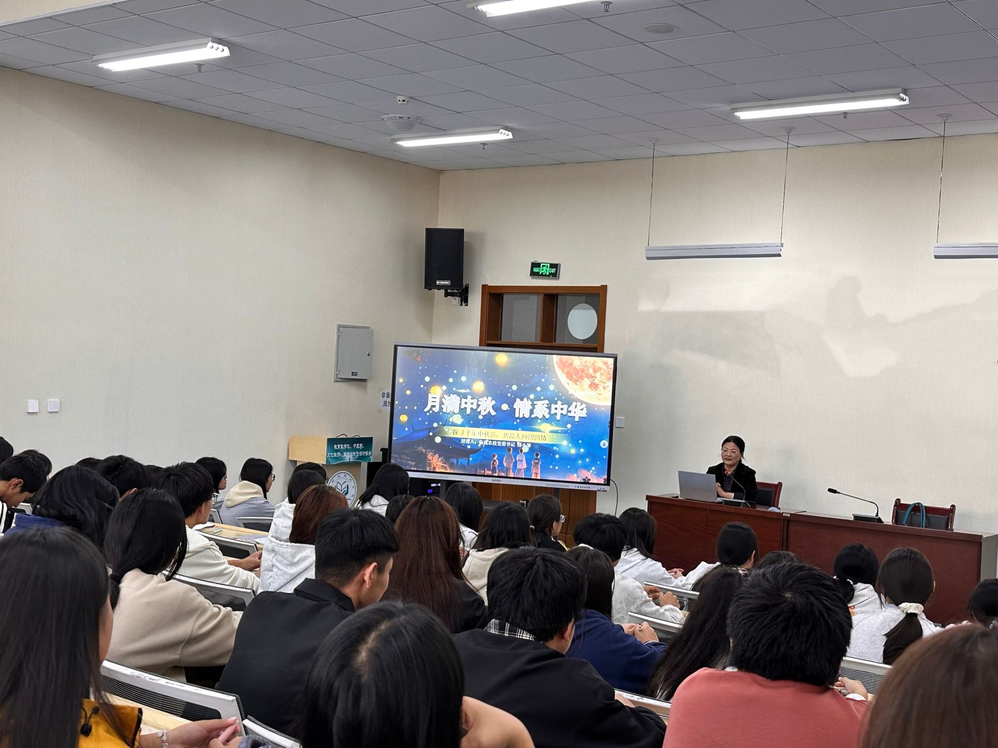 为弘扬中华优秀传统文化,厚植家国情怀,在中秋、国庆“双节”来临之际,学院党委副书记薛小琴以《月满中秋 情系中华》为题向中医康复241、242讲授思政课。