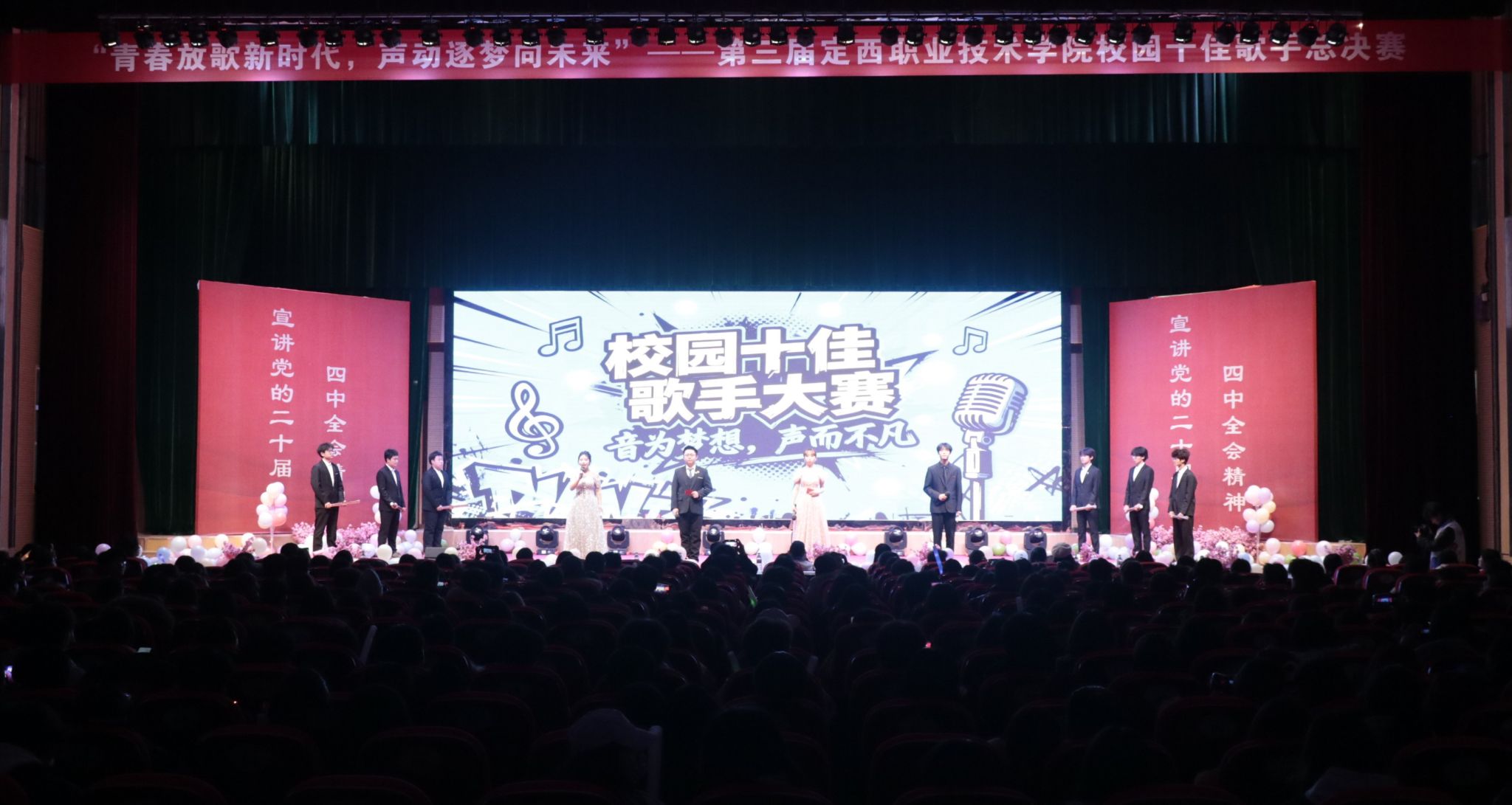 为深入学习贯彻习近平新时代中国特色社会主义思想,全面落实立德树人根本任务,丰富校园文化生活,展现青年学子积极向上的精神风貌,11月23日19:30,定西职业技术学院“音为梦想·声而不凡”第三届校园“十佳歌手”大赛总决赛在学院大礼堂盛大举行。灯光璀璨,旋律飞扬,一场青春与梦想交织的音乐盛宴,在定职校园激情上演。