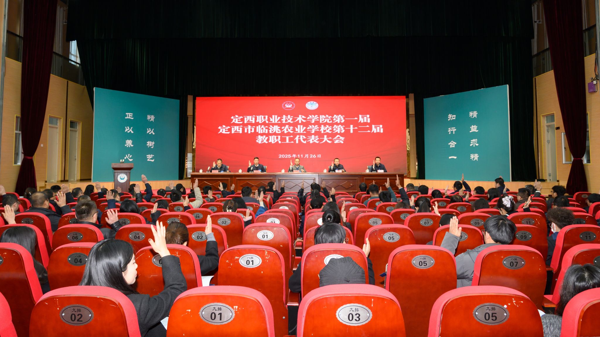 11月26日,定西职业技术学院第一届、定西市临洮农业学校第十二届教职工代表大会在学校会议中心礼堂隆重举行。市总工会副主席龙雪莹出席会议并讲话,学校全体代表、列席人员参会。