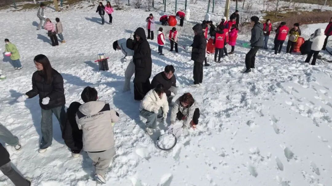 近日,甘肃农业大学应用技术学院美育实践团队走进临洮县洮河如意湾冰雪节,为这场冬日盛会带来别具一格的雪雕造型艺术。